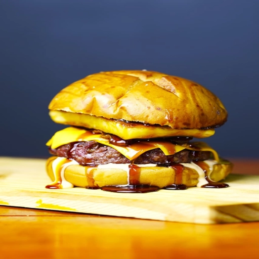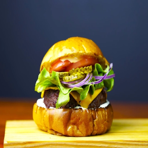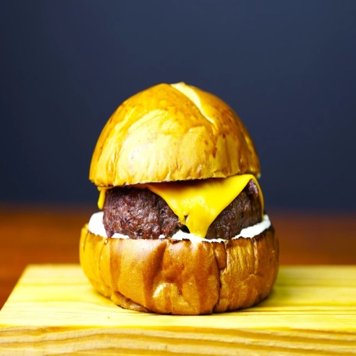 pão artesanal , maionese do cheff , queijo cheddar , hamburguer 150 g defumado na brasa ,