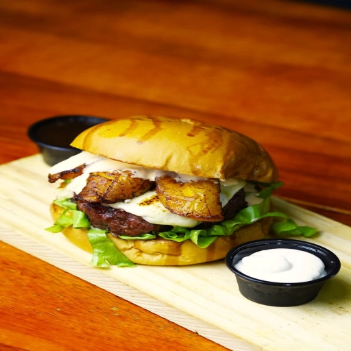 PAO ARTESANAL ,MAIONESE DA CASA,HAMNBURGUEr 150G DEFUMADO NA CHURRASQUEIRA ABAFO DE TONEL , QUEIJO MUSSARELA ,COSTELA DE... Ver completo